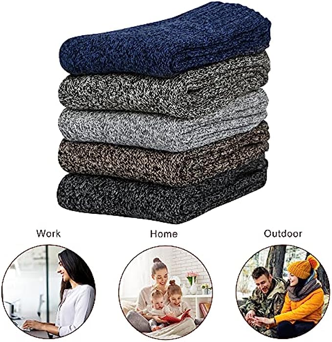 5 Pairs Womens Wool Socks Thick Knit Warm Winter Socks for Women Cozy Comfy Socks Gifts