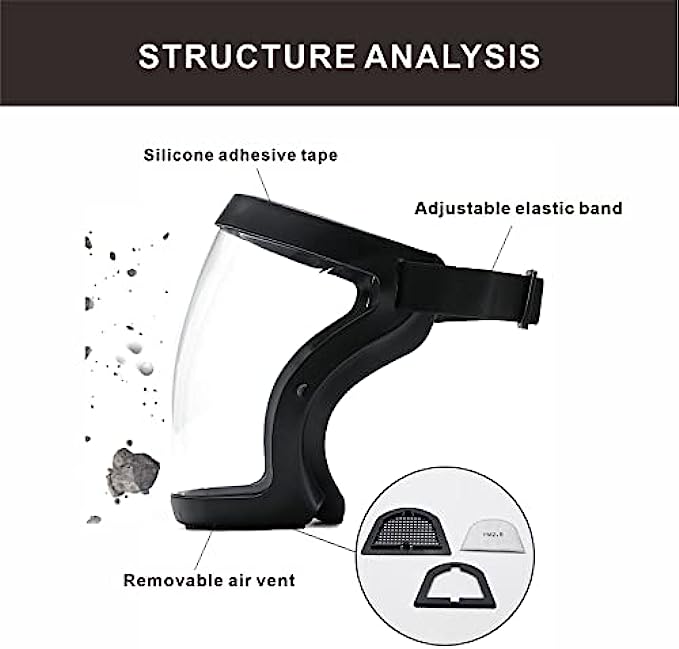 [SUPER CLEAR ANTI-FOG MATERIAL]: Facial protection equipment with anti-fog material, can resist fog after your long-term use. 100% transparent material allows you to see the whole face, convenient for daily communication with people.