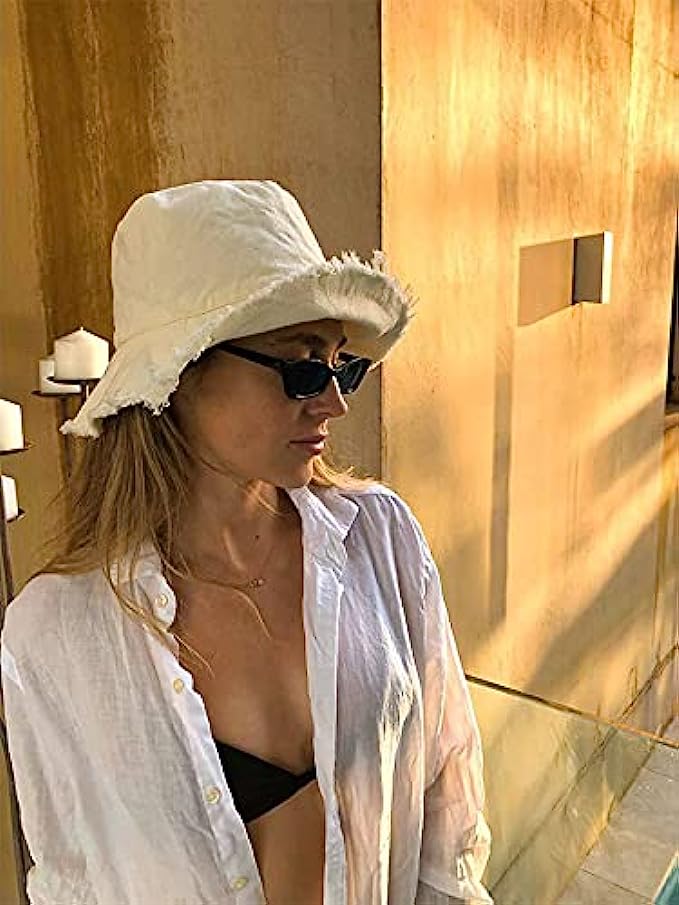 Accessorize your casual looks with the classic cotton bucket hat. Created in a beige tone with channel stitching along the frayed brim, the hat pairs perfectly with jeans and a cotton tee for a relaxed, casual aesthetic